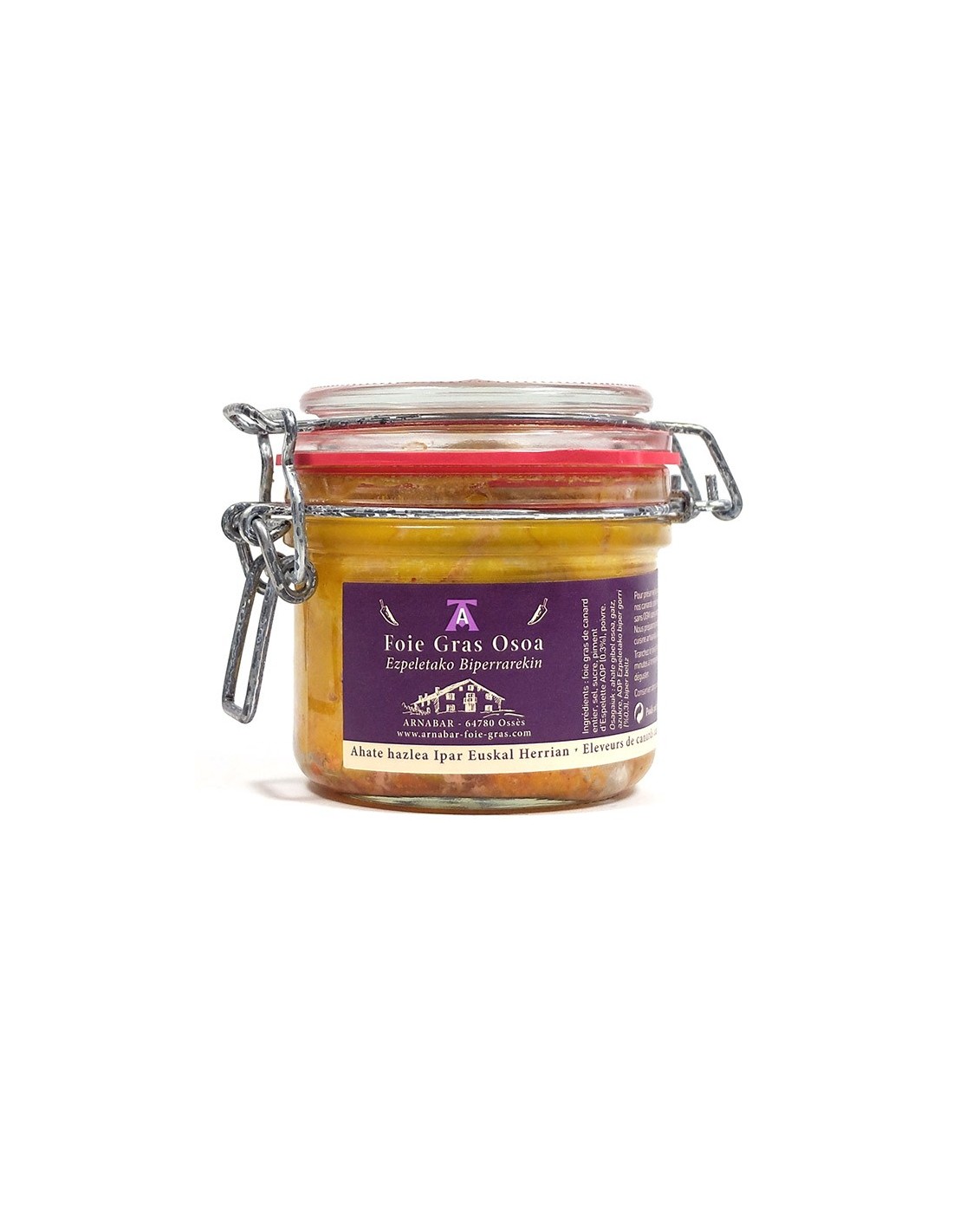 Ahate gibel osoa, Ezpeletako biperrarekin ondua - 200 gr, gure Ipar Euskal herriko kontserba-tailerrean ekoitzia.