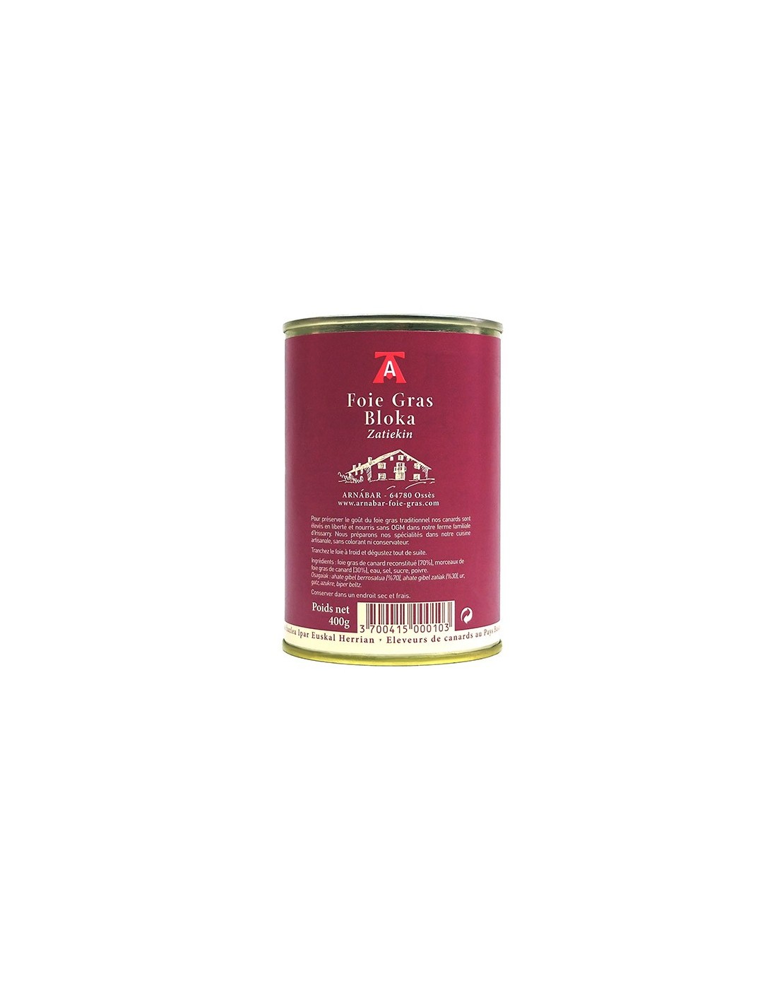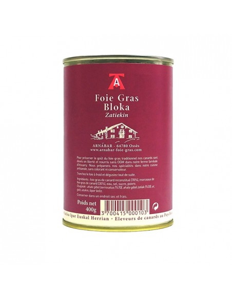 Ahate-gibela Bloka - Errezeta tradizionala - 400 gr, gure Ipar Euskal herriko kontserba-tailerrean ekoitzia.