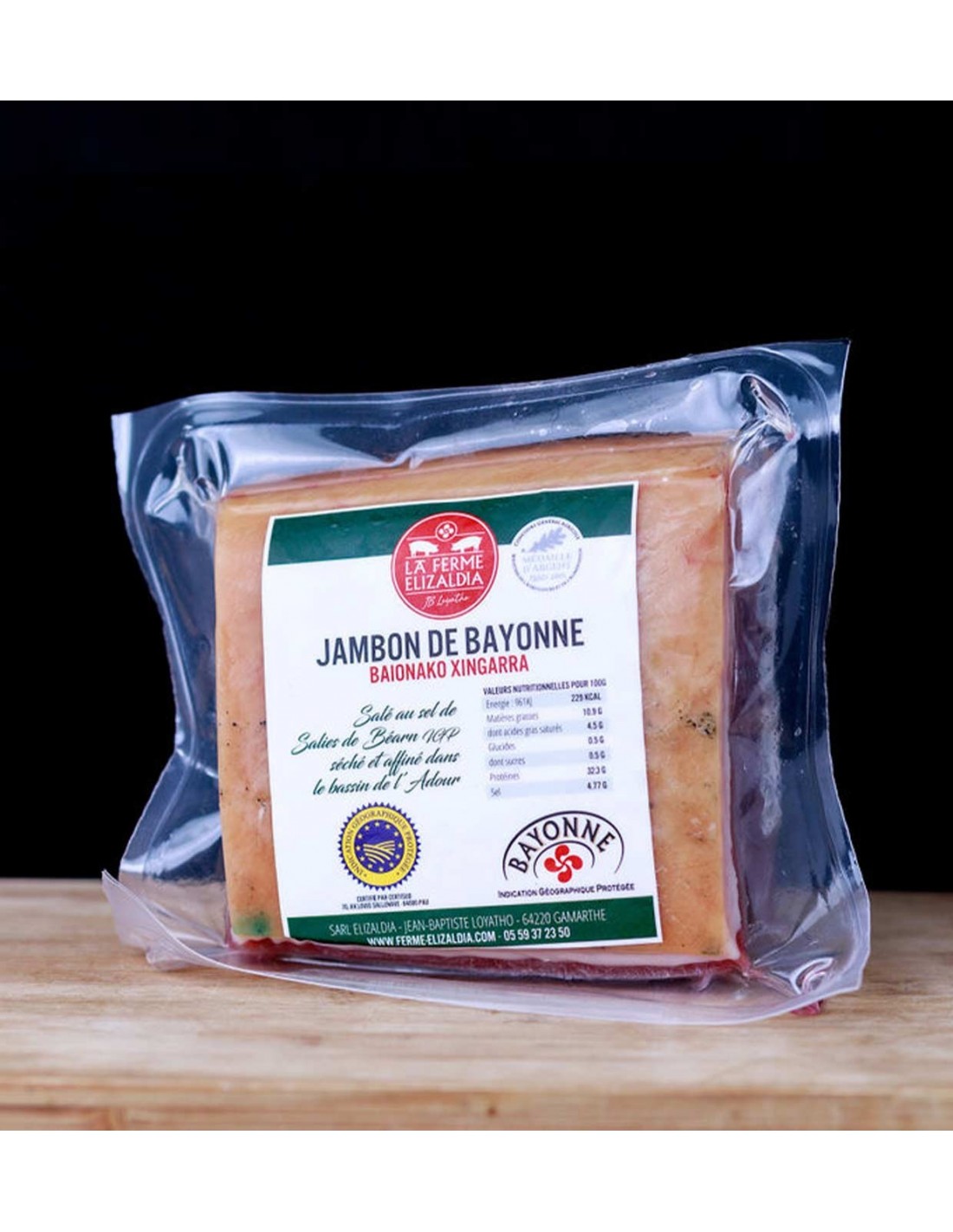 1/4 Baionako IGP xingarra -850 gr La Ferme Elizaldia, Ipar Euskal Herriko ekoizlea.