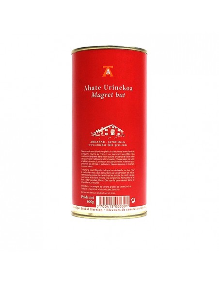 Ahate bularra zapore lodi eta xamurrekoa da. Luxuzko aragi nagusi bat! Gazi/gozo sukaldatzeko egokia. Gure ahateak kanpoan heziak dira, transgenikorik gabeko arto eta ekilore haziekin, gure familiako Arnabar baserrian, Irisarrin. Konfitatuak ahatik, Ortzaizeko kontserba-dendan artisauki sukaldatuak dira familiako jakintza tradizonalak segituz. Zati bakoitzak eskuz gatzituak dira, eta egosteari kasu berezia ematen diogu lurrinak eta testurak gordetzeko.
