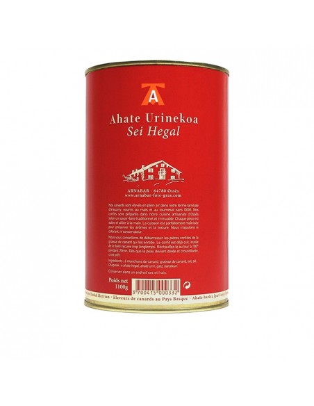 6 Ahate hegal konfitatu - 1100 gr, gure Ipar Euskal herriko kontserba-tailerrean ekoitzia.