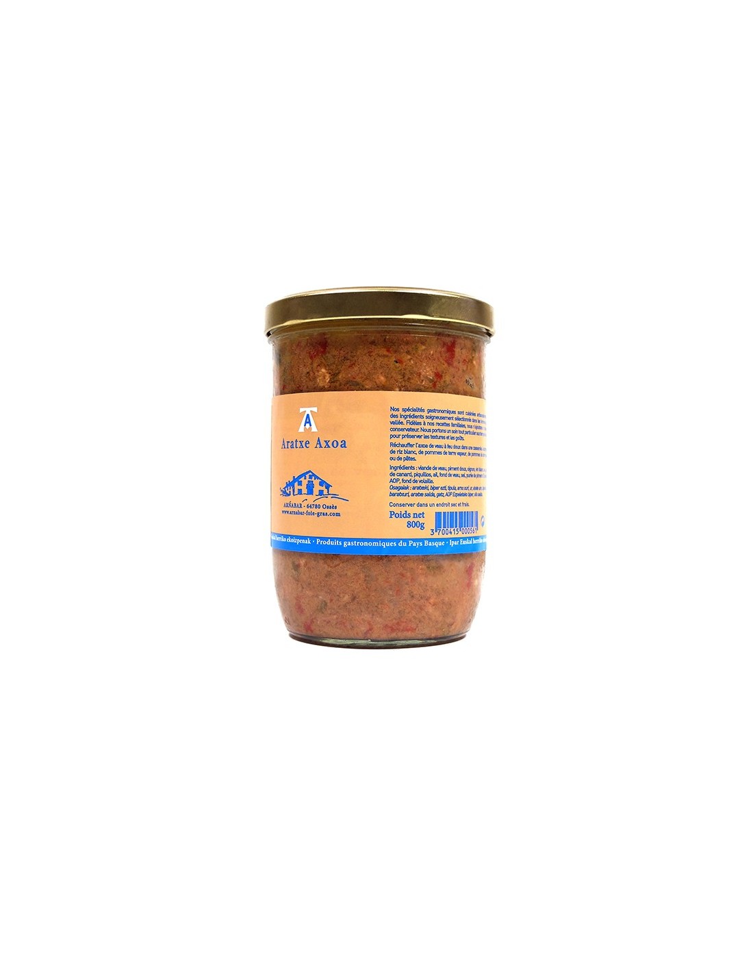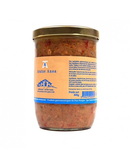 Aratxeki Axoa - ganibetaz moztutako haragiarekin - 800 gr, gure Ipar Euskal Herriko kontserba-tailerrean ekoitzia.