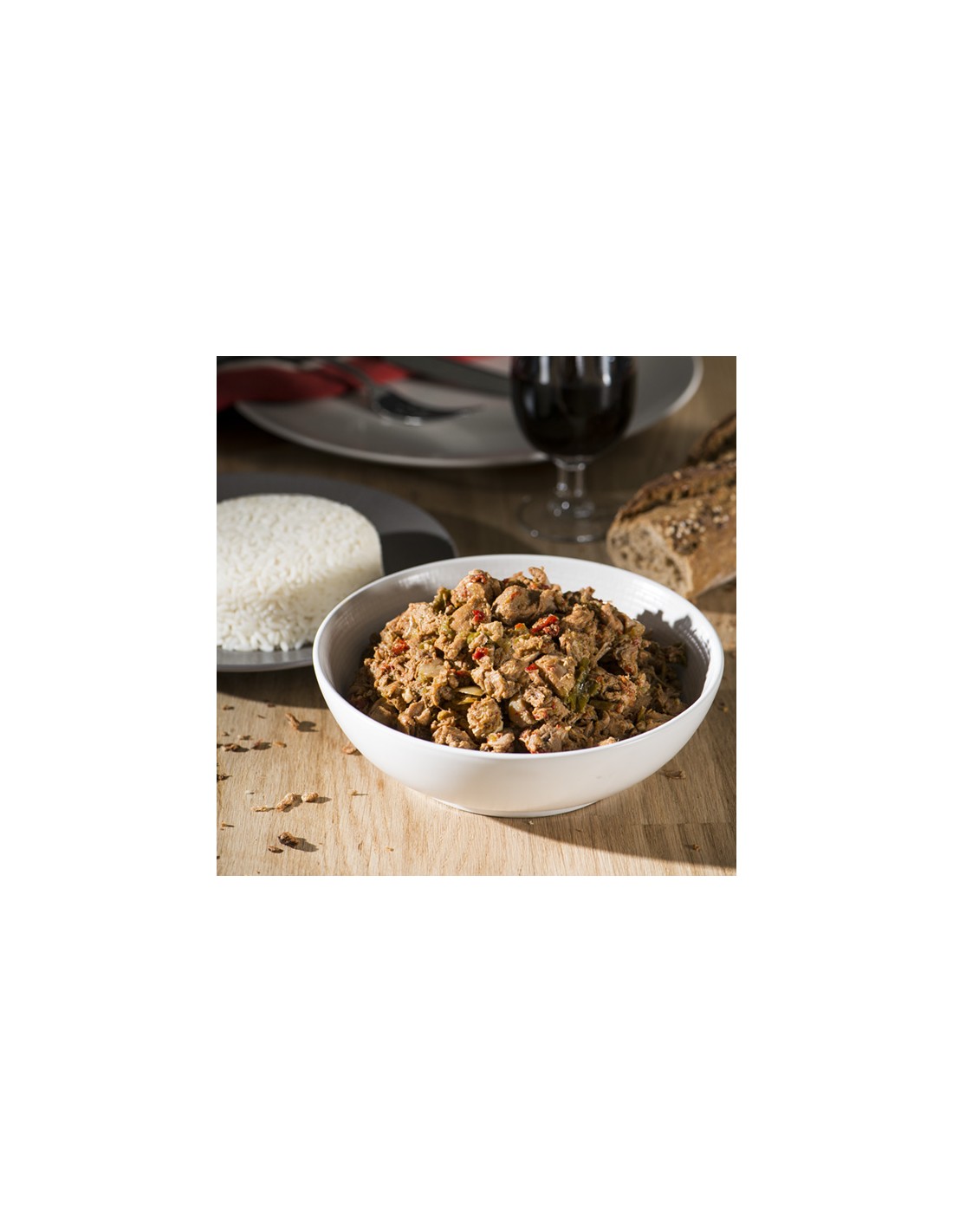 Osagaiak :Aratxeki haragia, biper goxoak, tipula, ardo xuria, ura, ahate urina, piquillo, baratxuri, aratxeki salda, gatza, Ezpeletako biper purea.