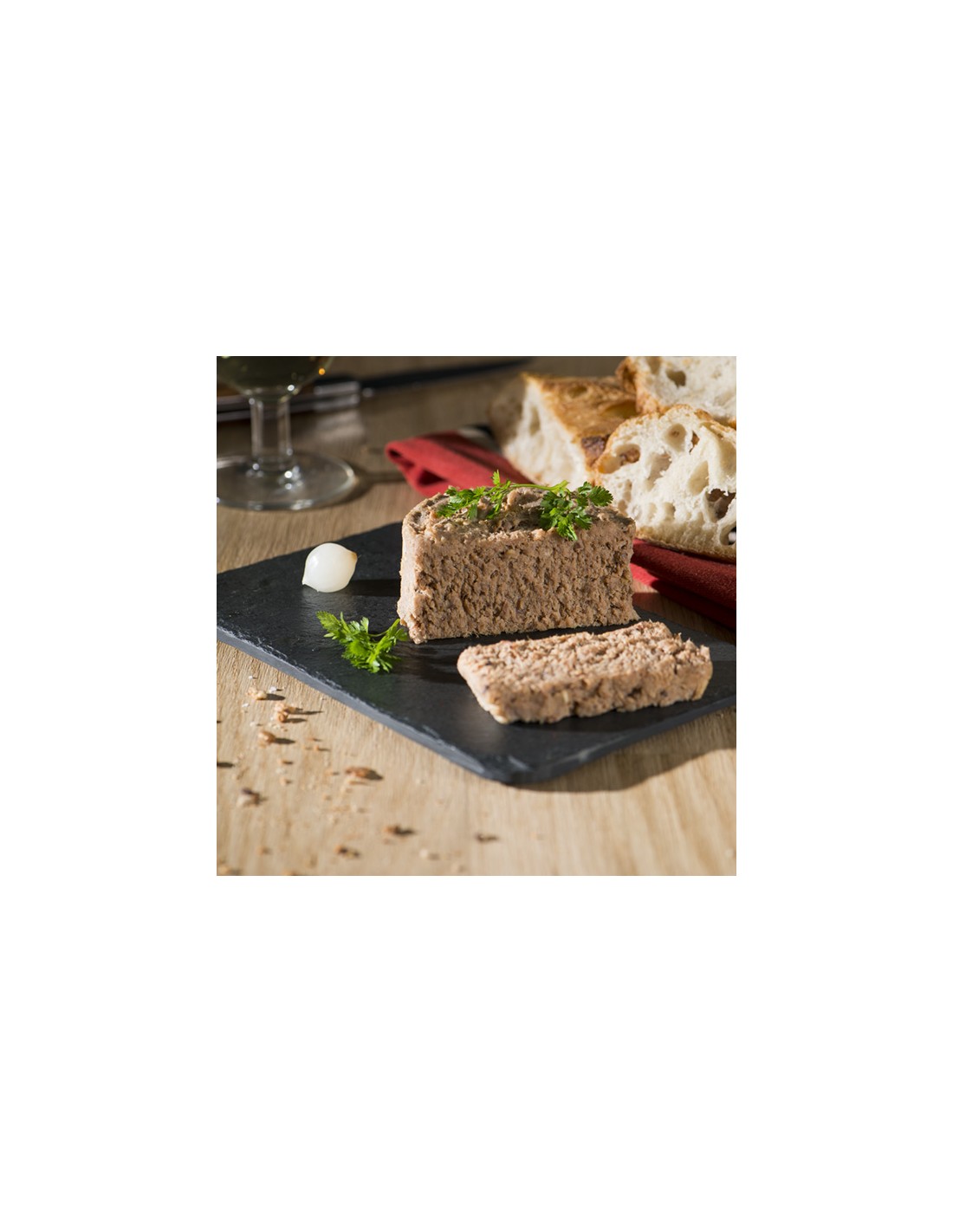 Terrina hau artesauki sukaldatua da Iparraldeko xerrikiarekin. Gure baserrian hezi ahate gibelarekin nahasturik goxoago gelditzen da!